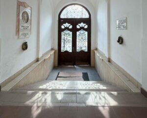 After breakfast we took a walk to the school that we were teaming up with to play a European Business game. The school was housed in a very beautiful, traditional old building.