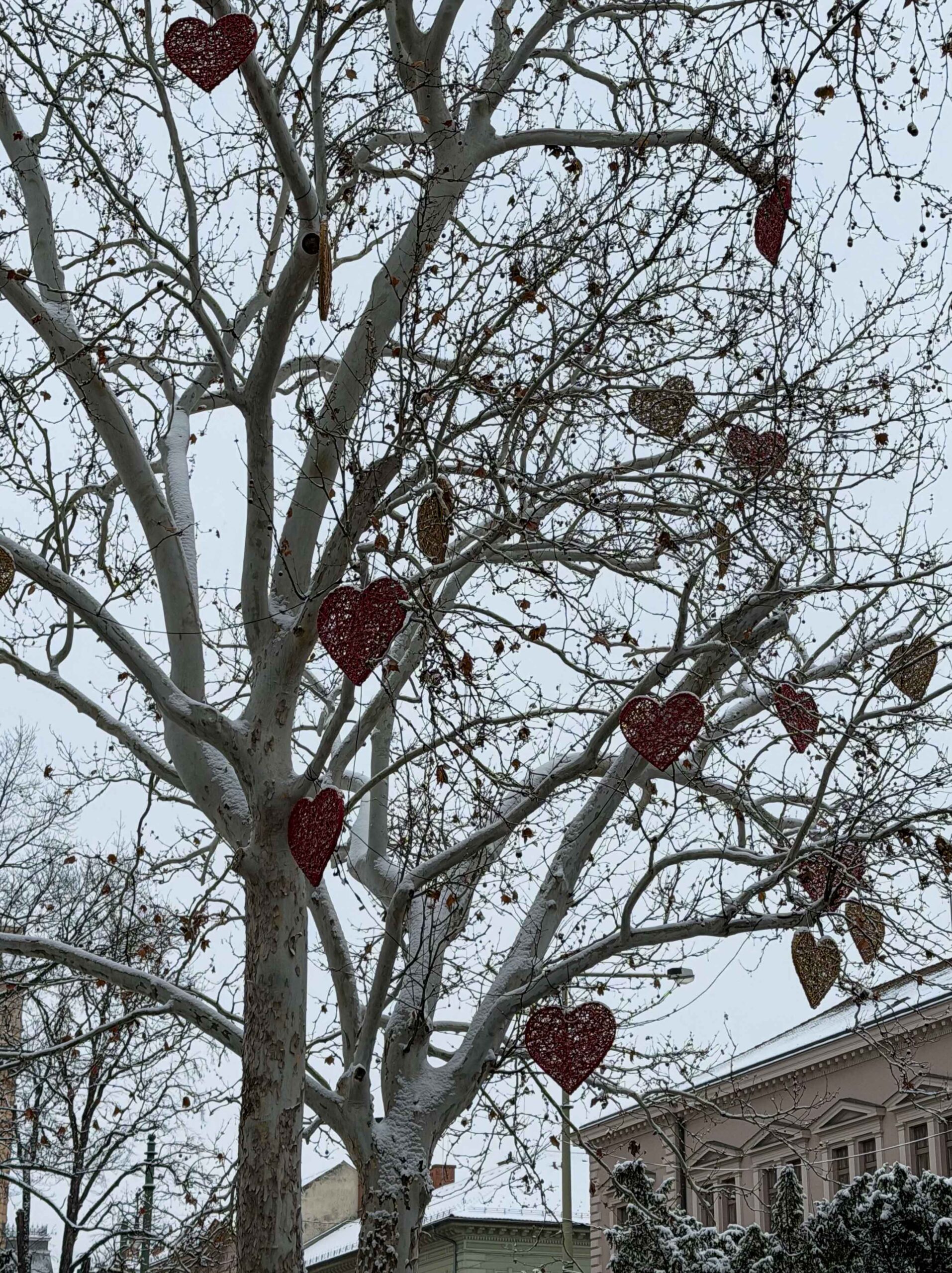 I decided to shoot a few images en-route. Here are a few of them below. What really struck me were the little tree decorations. Someone had covered a tree in hearts.