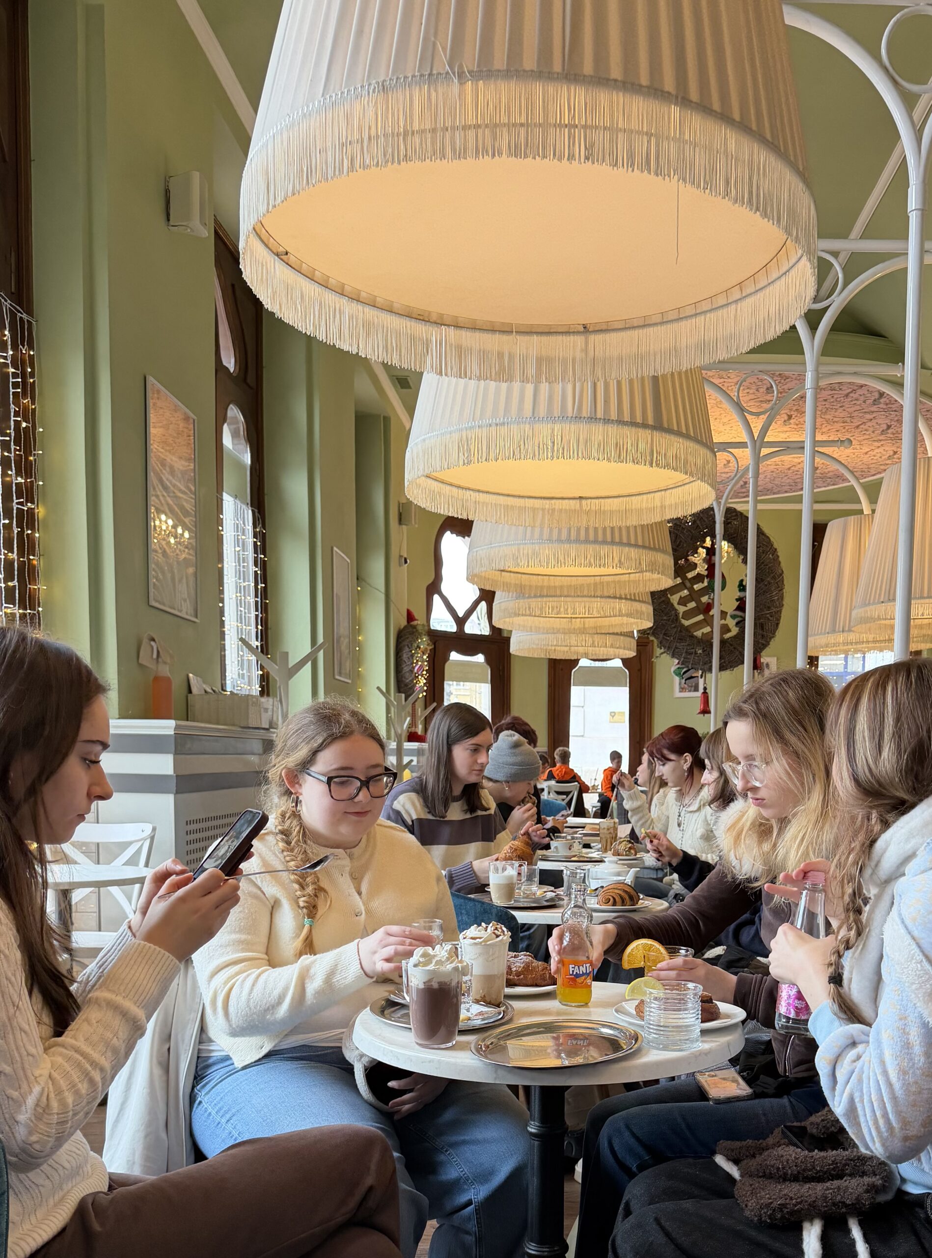 We all assembled early ready to walk into town for some breakfast. The route into town was very beautiful with snow covered trees set against a backdrop of interesting architecture.